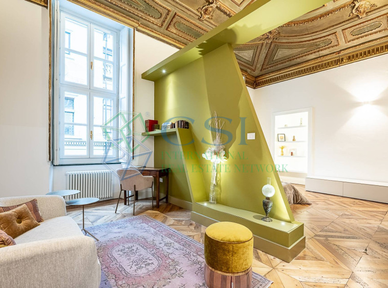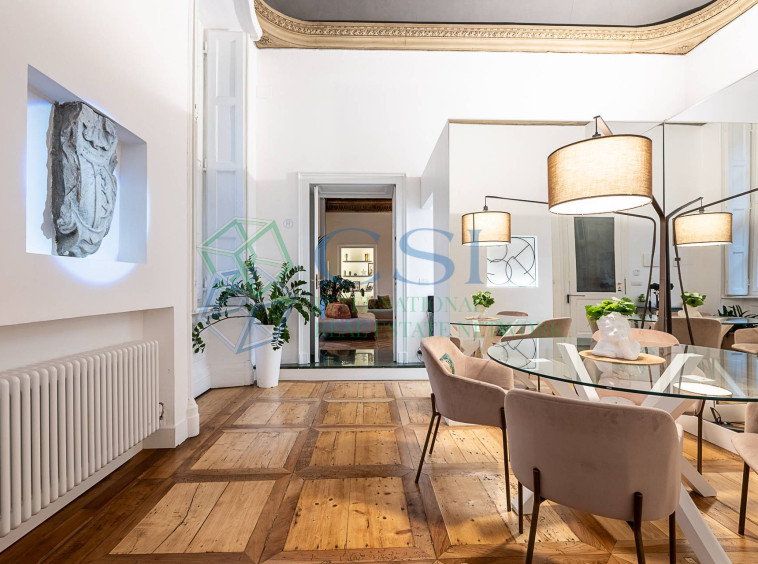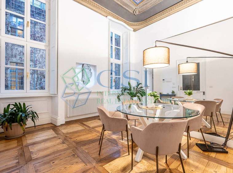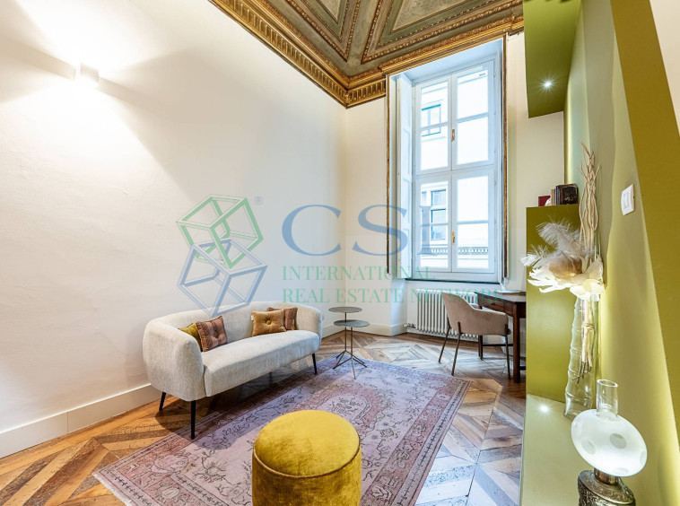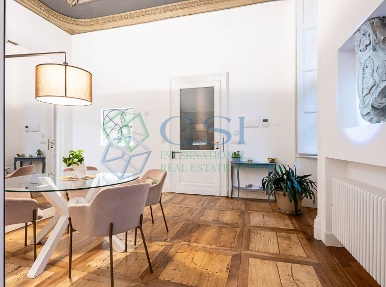 In the heart of the city centre, a splendid flat located on the first floor of an elegant 17th-century building, well maintained in both the internal and external common areas. The flat measures approximately 185 square metres and consists of an entrance hall leading to the living area with a designer kitchen, a bright living… [ Reserved content accessible upon registration ]